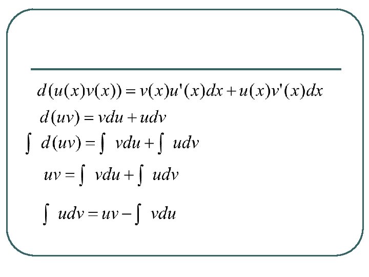 PENGINTEGRALAN PARSIAL (548) l l Metode ini didasarkan pada rumus turunan hasilkali dua fungsi Misalkan