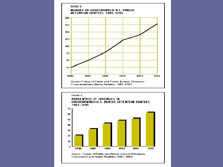 Schall v Martin (1984) • NYS Court of Appeals found that detention was used for punishment, since most petitions were dismissed or defendants were released • US Supreme Court: Judges can predict future danger best (reject social science claim) • State interest in protecting juveniles justifies use of detention to help juveniles themselves avoid future crimes that would expose them to further court action and other harms (“his own folly”) • Schall blamed for much overcrowding, leading to significant litigation all across the country – Schall narrowed and simplified standards for detention, substituted procedural standards for substantive standards
