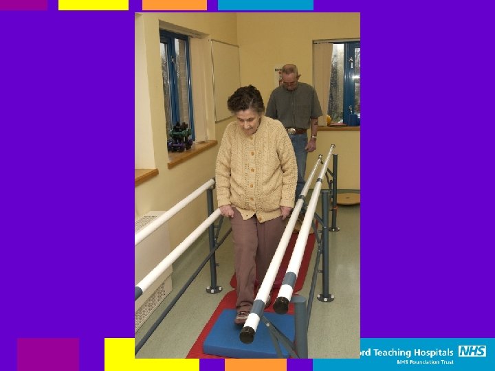 Balance & Walking Groups • • 3 Centres across Bradford 9 Groups in total Patients attend 2 x week for 8 weeks Validated Assessment and Outcome Tools pre and post attendance – TUG, Tinetti gait & balance, timed sit to stand, Falls efficacy scale • Educational component on avoiding falls and coping strategies in the event of a fall