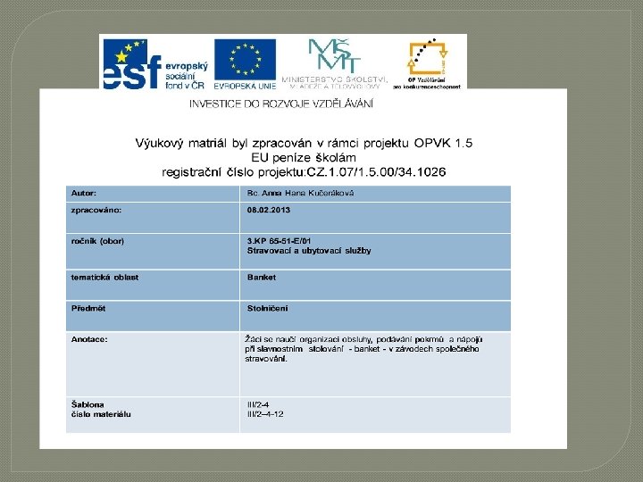 ZDROJE http: //www. fotograftichy. cz/sites/fotograftichy/sluzby/svatebni-fotograf/svatebni-hostina. jpg http: //www. intercatering. cz/CS/catering/bankety http: //office. microsoft. com/cs-cz/images/results. aspx? qu=po%C 4%8 D%C 3%ADta%C 4%8 D&ex=1#pg: 2| http: //office. microsoft. com/cs-cz/images/results. aspx? qu=telefon&ex=1 http: //www. google. cz/search? hl=cs&q=svatební%20 hostina&tb http//www. stredniskolarymarov. cz/soubory/htm/. . . /Legenda_vzor 2. pdf http: //www. google. cz/search? hl=cs&q=předkrmy%20 studené&tbs http: //office. microsoft. com/cs-cz/images/results. aspx? qu=kucha%C 5%99&ex=2 http: //www. souhorky. cz/ucebnice/st/hostiny/banketniobsluha. htm http: //www. obrazky. cz/detail? q=slavnostn%C 3%AD%20 tabule&offset=73&limit=20&b. Url. Par=filter% 3 D 1&res. Num=78&ref=http%3 A//www. obr ŠINDELKOVÁ, Alena. Stolničení: učebnice pro odborná učiliště, obor Kuchařské práce. 1. vyd. Praha: Parta, 2001, 51 s. ISBN 80 -859 -8985 -9.