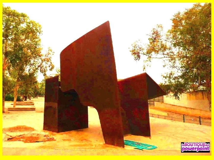 Escultura “CONSTRUCCIÓ” de Eduald Serra es una figura abstracta, una forma híbrida entre caballo y silla, es de hierro y mide seis metros Escultura “DIME, DIME QUERIDO” de Susana Solano, trabajo hecho con planchas de metal, de ocho metros de altura.