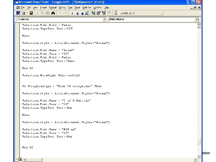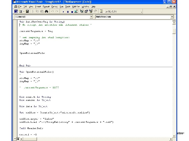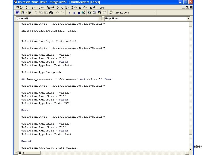 VBA script sets data into the layout of. dot § Data from XML is output to document § Trick: - Record macro and modify code created.