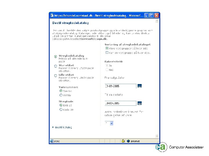 Overview § Shop (www. sanistaal. dk) - 120. 000 items on stock (and in web-shop) - Tools, steel, sanitary items - $ 600 million turnover § Objective is self service - Customer selects from web-shop - Catalog/labels are mailed as a pdf document - 24/7 availability - Moving a substantial amount of business to e-trade