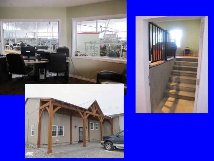 Windows onto: 1. Calving area 2. Cows in front of the robot 3. The approach to the barn outside High terminal for stand up access, bar stool for longer jobs Easy to clean surfaces ……. or a separate stand up terminal in the hallway