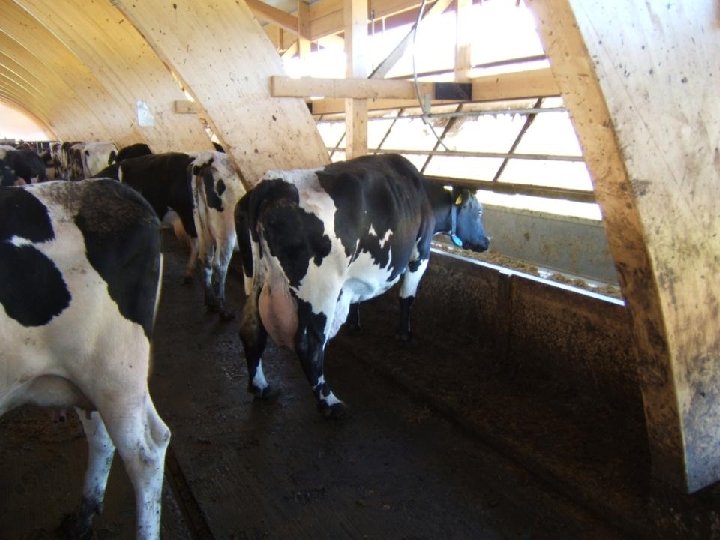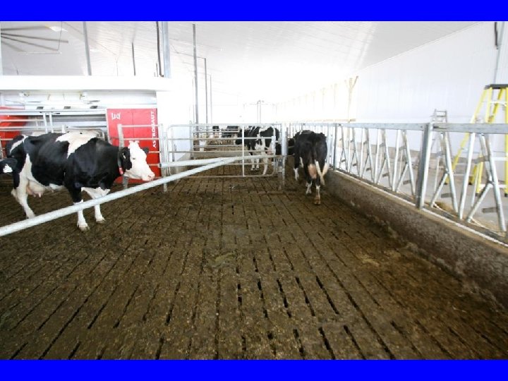 Cows don’t leave the barn…. . . Big equipment is disruptive ! Straight wide, drive through alleys, big crossovers and free traffic minimize disruption of the cows