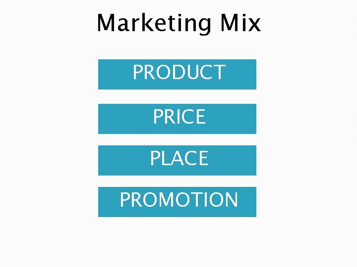 Marketing Mix PRODUCT PRICE PLACE PROMOTION