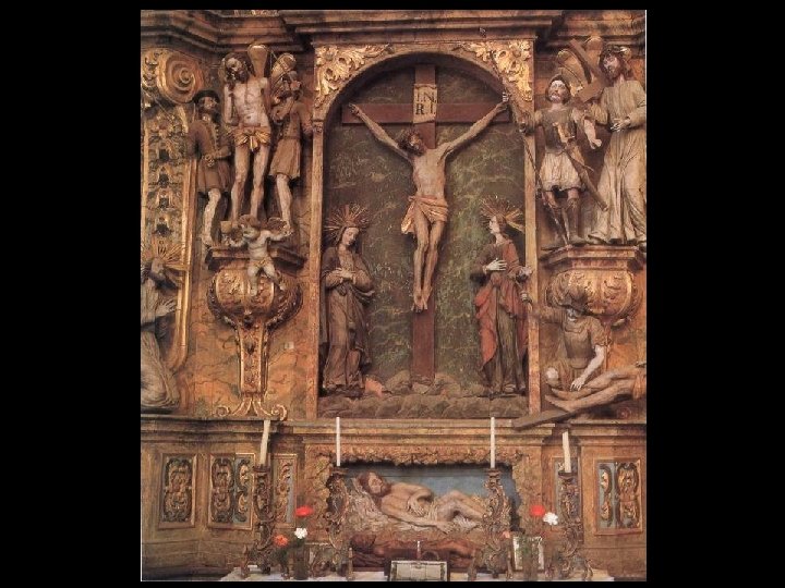 Színpadiasság: a kápolna oldal falán a Cornarók, mint nézők a színpad előtt