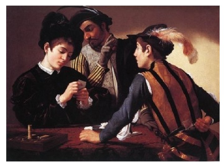 Caravaggio • Vl. jm. Michaelo Marisi, (1592? -1610) • Neklidný život, různé cesty • Řím, Neapol, Malta, Sicílie, Syrakusy, Palermo • Dílo • Olejomalby, fresky • Náboženská tématika, lidské utrpení, bída, také zátiší • Výjevy ze života Sv. Matouše • Loutnista, Falešní hráči, Bacchus, Magdalena, Judita a Holofernes, Hlava Medúzy