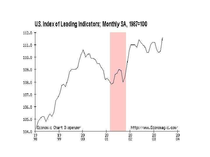 U. S. Index of Leading Indicators, 1987 = 100 CLI led March 2001 peak by 14 months -14