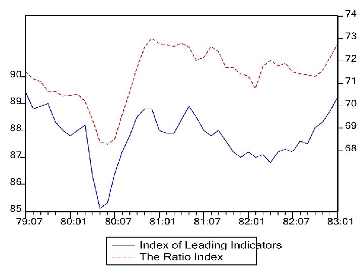 The Ratio Index (RI) • Let C denote the composite index of coincident indicators. • Let L denote the index of lagging indicators. • The ratio index is given by: RI = C/L