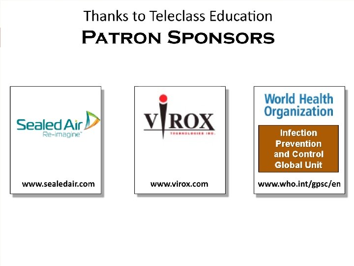 March 16 (Free WHO Teleclass. . . Europe) THE GLOBAL MYCOBACTERIUM CHIMAERA OUTBREAK IN CARDIAC SURGERY Dr. Hugo Sax, University of Zurich Hospitals Sponsored by the World Health Organization March 17 (Free Teleclass) INFECTION PREVENTION AND CONTROL WITH ACCREDITATION CANADA QMENTUM PROGRAM Chingiz Amirov, Canadian Journal of Infection Control Sponsored by GOJO March 31 SUCCESSFUL IMPLEMENTATION OF CATHETER-ASSOCIATED URINARY TRACT INFECTION BUNDLES: LESSONS LEARNED Prof. Sarah L. Krein, University of Michigan April 7 PREVENTING INVASIVE CANDIDA INFECTIONS – WHERE COULD WE DO BETTER?