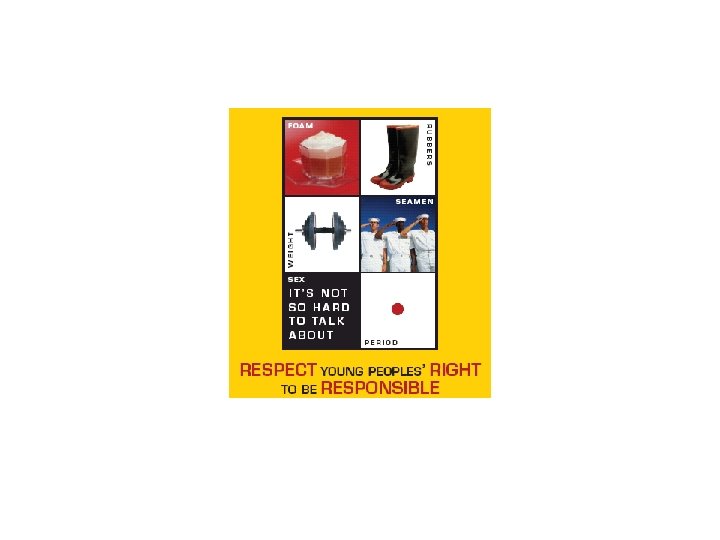 Condom Misinformation • “In heterosexual sex, condoms fail to prevent HIV approximately 31% of the time. ” • “The popular claim that ‘condoms help prevent the spread of STDs, ’ is not supported by the data. ” • “Pregnancy occurs 1/7 times that a couple uses a condom. ” Waxman, H. U. S. House of Representatives Report 2004