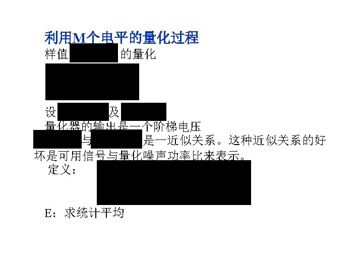 • From a practical viewpoint, four types of quantized noise: 1. Overload noise the peak value of analog waveform exceeds the quantizer’s peak value 2. Random noise random quantification’s error 3. Granular noise uniform quantification caused 4. Hunting noise oscillation of quantizer’s output due to relatively constant input M=2 n, (n the digital word’s length) so the average SNR in decibel is : (S/N)db=6. 02 n From this formula(6 d. B rule), every additional bit added to digital word will gain 6 d. B in performance of SNR.