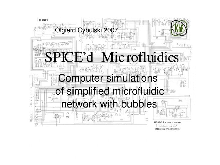 Basic assumptions of the model Example of circuit : • Circuits consist of nodes, channels, pumps and bubble-sources • Channels are 1 -dimensional, nodes are 0 -dimensional, as in a planar graph • Bubbles are point charges of resistance, added to the constant resistance of the channel they occupy • Bubbles flow at the superficial speed of flow • Flow is driven by a pressure drop applied to the inlet and outlet of the system
