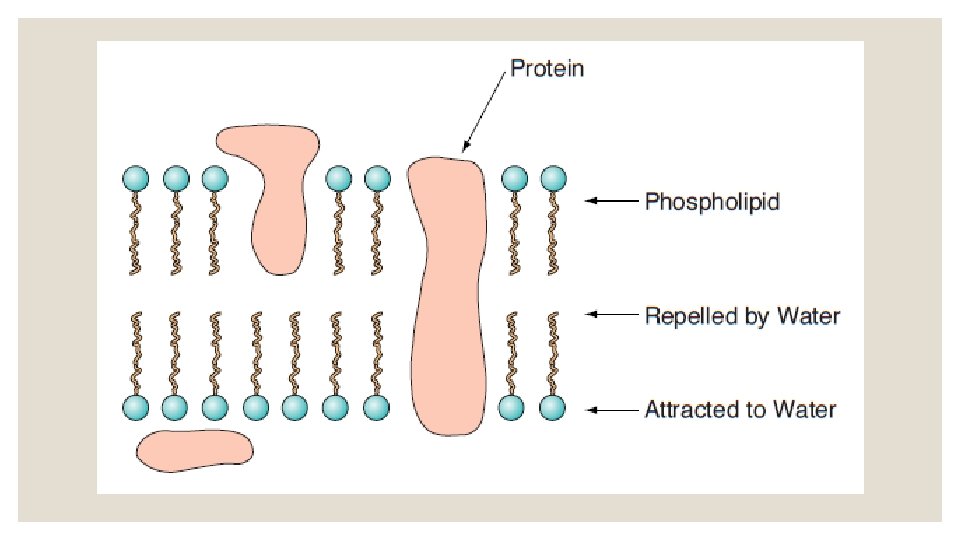 Cell Membrane ◦ AKA the Plasma Membrane ◦ Is common to all cells. ◦ Serves as the boundary that keeps the inside of the cell contained. ◦ Is so fine that it cannot be seen with a normal light microscope. ◦ The cell membrane is about half protein and half phospholipid. ◦ One end of phospholipids are attracted to water (Hydrophilic), whereas the other end is repelled by water (Hydrophobic). ◦ The cell membrane, which is surrounded by water on both sides, has two layers of lipid in its wall. ◦ The ends of the lipid that are attracted to water face outward ◦ Proteins: ◦ Included in the membrane, both between the lipid molecules and on the surface. ◦ Play a key role in the structure and function of cells.