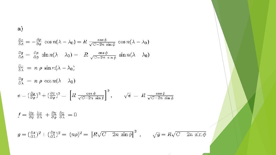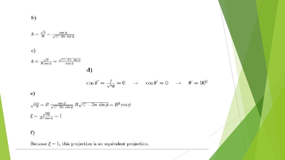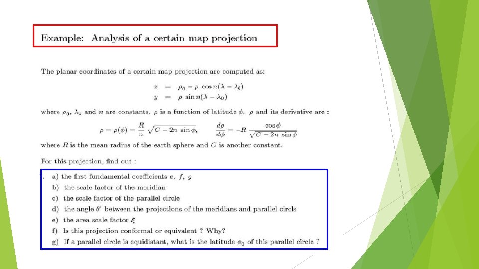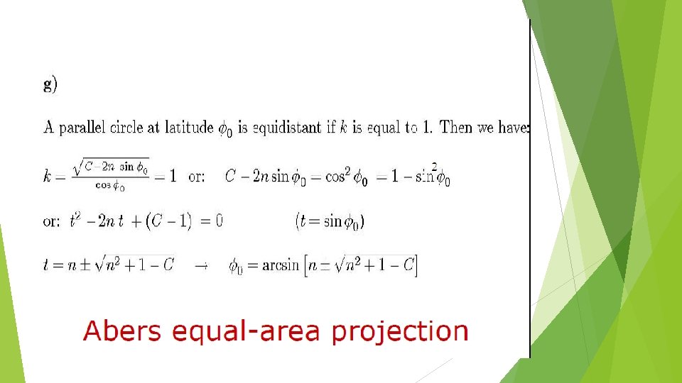 Tissot’s indicatrix & projection properties Conformal The projections: a=b, ω=0 indicatrix is a circle Equal-area Shape projections: a • b =1 and size distortion Equidistant projections: h=1. 0 for meridians and certain parallel circles