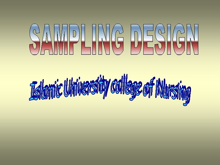 Basic concepts • The target population: Example 1: all RNs currently employed in the Gaza Strip is the target population, but the more modest accessible population is RNs working in Gaza city. Example 2: A target population might consist of all diabetic people in the Gaza Strip, but the accessible population might consist of all diabetic people who are members of a UNRWA clinic.