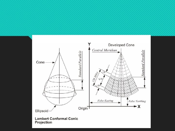 State Plane Coordinate Systems Zones have different projections Lambert Conformal Conic: for states that are longer east–west, such as Tennessee, Kentucky, North Carolina, Virginia, etc. Transverse Mercator projection: for states that are longer north–south, such as Illinois, Arizona, New Hampshire, etc. The Oblique Mercator projection: for the panhandle of Alaska (AK zone 1) because it lays at an angle