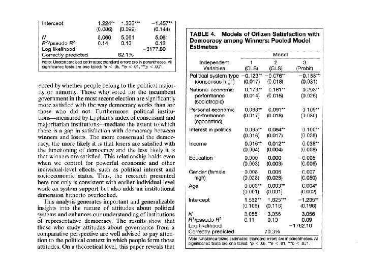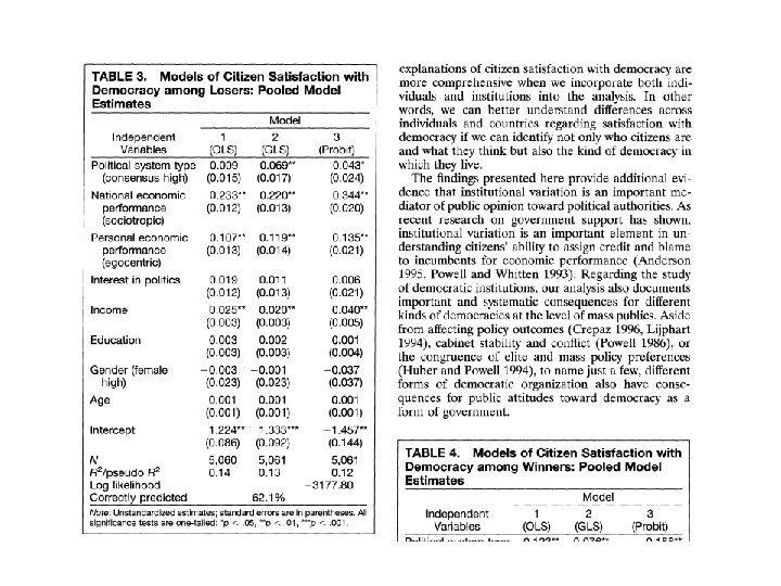 Survey Data Analysis • Anderson and Guillory (1997) examine satisfaction with democracy. • Huber, Kernell, and Leoni (2005) examine partisan attachment. • Interactions and Limited Dependent Variables.