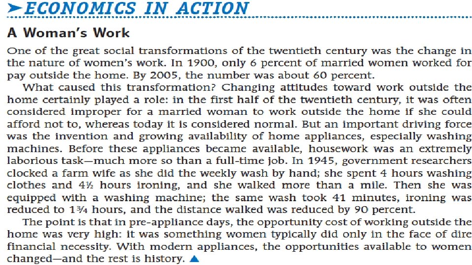 • 1. Explain how each of the following situations illustrates one of the four principles of individual choice. • b. Even if there were more resources in the world, there would still be scarcity.