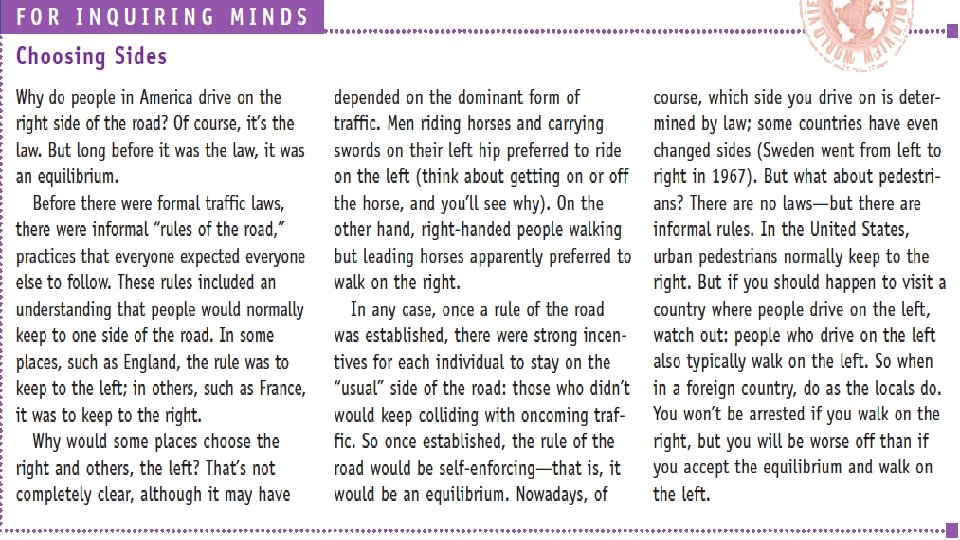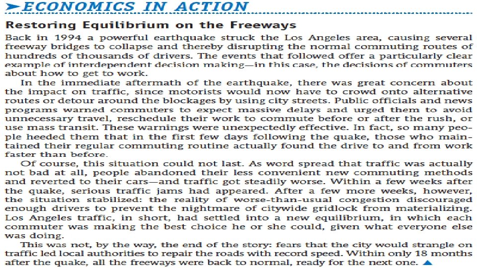 Check your understanding • 1. Explain how each of the following situations illustrates one of the five principles of interaction. • A. Using the college website, any student who wants to sell a used textbook for at least $30 is able to sell it to someone who is willing to pay $30. • Markets usually lead to efficiency.