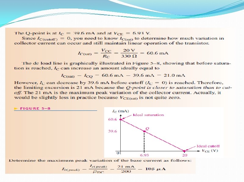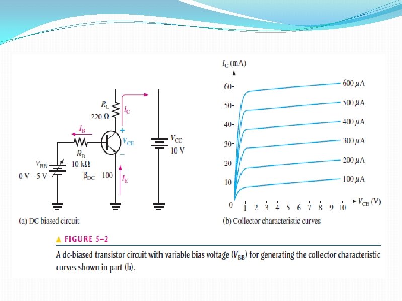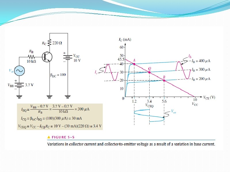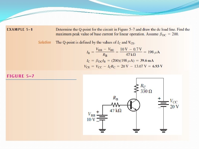 5– 1 THE DC OPERATING POINT �A transistor must be properly biased with a dc voltage in order to operate as a linear amplifier. A dc operating point must be set so that signal variations at the input terminal �The dc operating point is often referred to as the Q-point