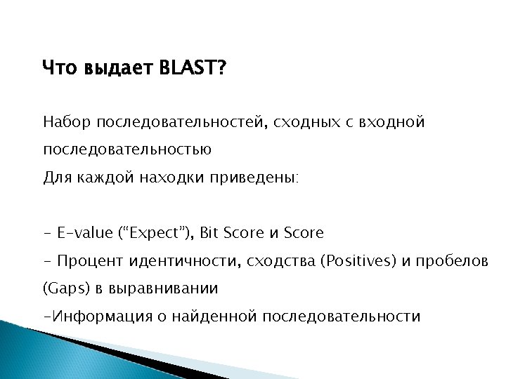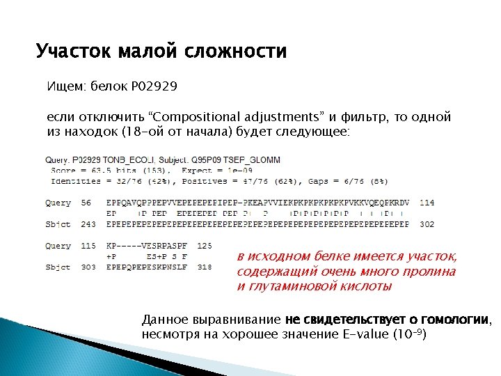 Длина найденного белка Length=129 Вес в битах Вес E-value Score = 78. 6 bits (192), Expect = 9 e-15, Method: Compositional matrix adjust. Identities = 34/73 (47%), Positives = 50/73 (68%), Gaps = 0/73 (0%) Query 17 YRLEEVQKHNNSQSTWIIVHHRIYDITKFLDEHPGGEEVLREQAGGDATENFEDVGHSTD 76 Y EEV +H W+I++ ++Y+I+ ++DEHPGGEEV+ + AG DATE F+D+GHS + Sbjct 11 YTHEEVAQHTTHDDLWVILNGKVYNISNYIDEHPGGEEVILDCAGTDATEAFDDIGHSDE 70 Query 77 ARALSETFIIGEL 89 A + E IG L Sbjct 71 AHEILEKLYIGNL 83 Число совпадений Длина выравнивания