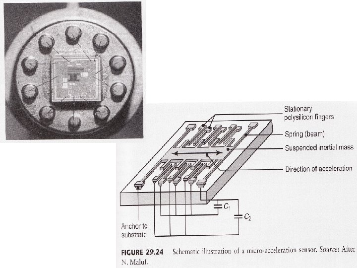 Microactuators • Microactuators—Like a sensor, an actuator converts a physical variable of one type into another type, but the converted variable usually involves some mechanical action (e. g. , a piezoelectric device oscillating in response to an alternating electrical field). • An actuator causes a change in position or the application of force. Examples of microactuators include valves, positioners, switches, pumps, and rotational and linear motors.