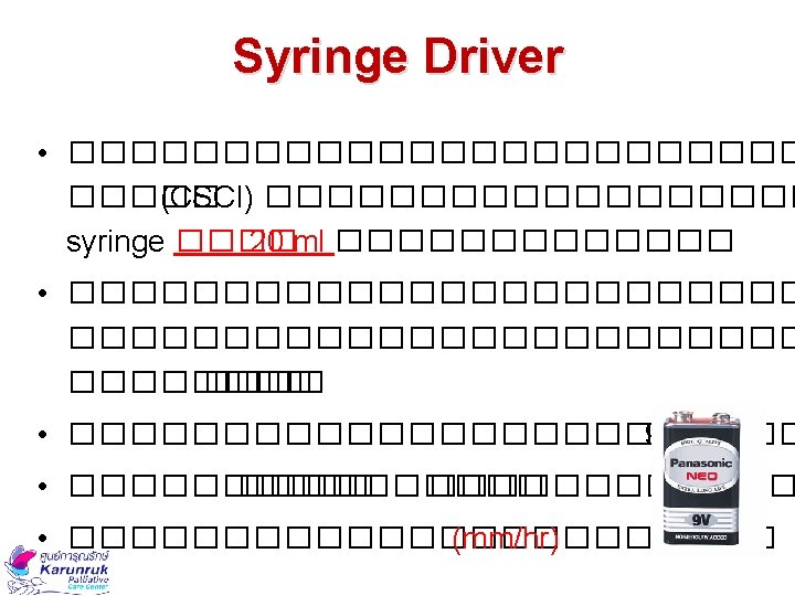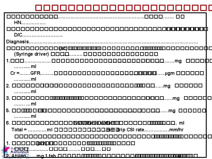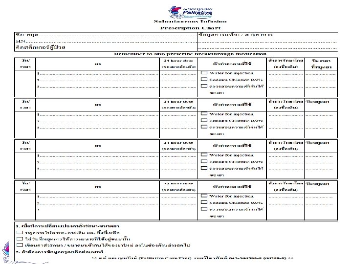 Drug Given in Palliative Care • ����� palliative care ������������ ����������� Subcut. , SL ��� rectal suppository • ������������ off label (������������ ) �������� palliative care ����� Twycross & Wilcock. HPCF USA Hospice and Palliative Care Formulary USA. 2008 : 497 -508.