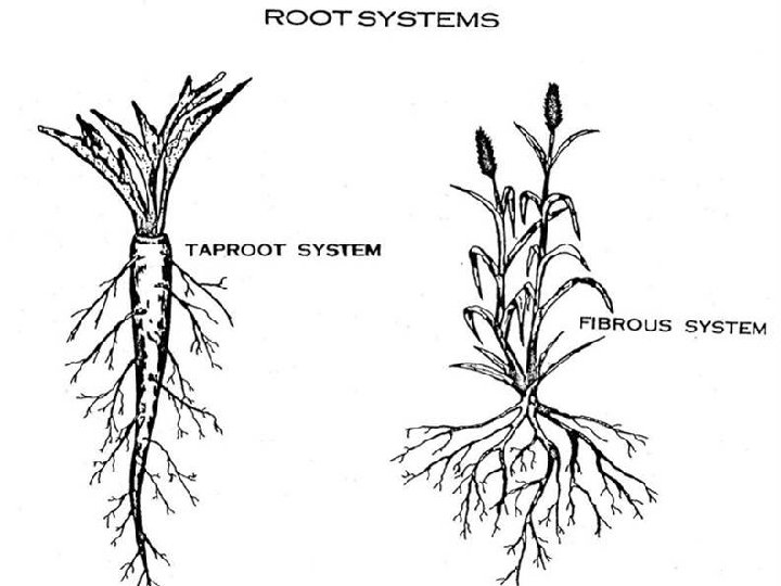 Types of Root Systems ► 1. Taproots: primary roots; reach deep into soil § ex. Carrot, dandelions, oak ► 2. Fibrous: no real primary roots; many fine roots, spread out at soil surface § ex. Annuals, grasses, shrubs ► 3. Fleshy: become food reservoirs, store surplus food § ex. Carrots, turnips, beets