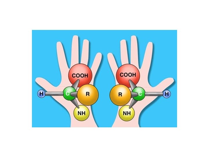 Amino Acid Chirality R R CA CA H CO N L-form H N CO D-form (CORN rule) Amino acids in proteins are in the L-form Threonine and Isoleucine have a second optical center which is also identical in all natural amino acids.