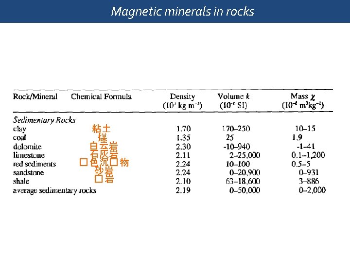Magnetic minerals in rocks Median values and ranges of the magnetic susceptibility of some common rock types