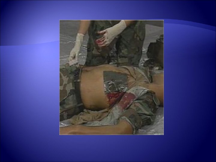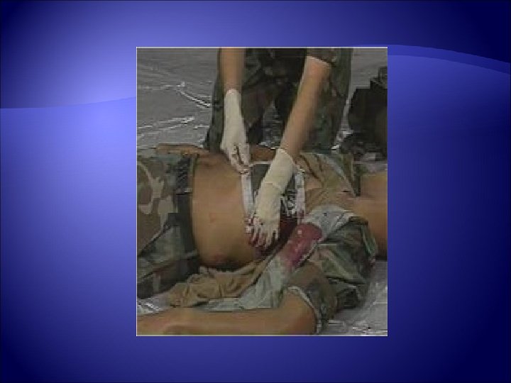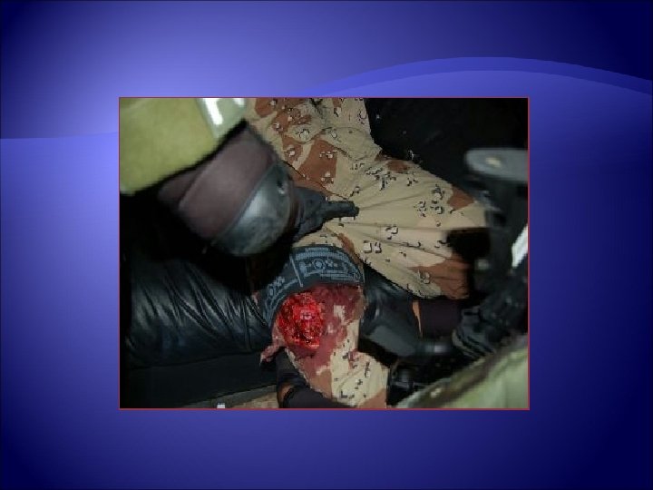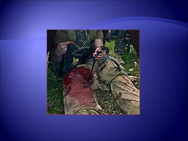 Bleeding from extremity wounds • A 40% loss - about 4 pints will usually result in death. • How quickly this occurs obviously depends on where and how the damage occurs, but… • Bleeding out and death can occur in 3 to 5 minutes in the worse case.