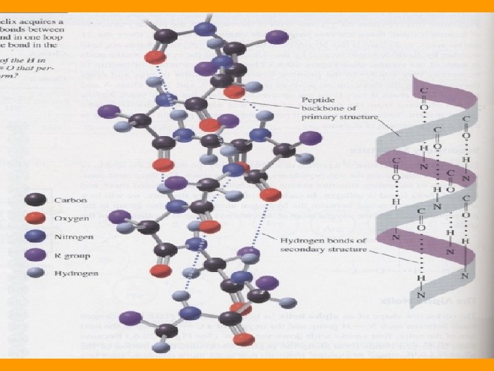 • Remember: • Secondary structure is HYDROGEN BONDS -- hydrogen bonding between the N-H and C=O groups along the backbone or primary structure of the protein. • The two most common folding patterns in secondary structure are the a-helix and the bsheet (parallel or anti-parallel)