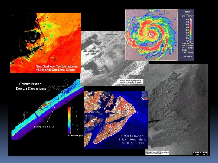 Remote Sensing: acquisition of data about earth’s surface from satellite images are transmitted in digital form. Example: used with Hurricane Katrina to monitor areas of impact