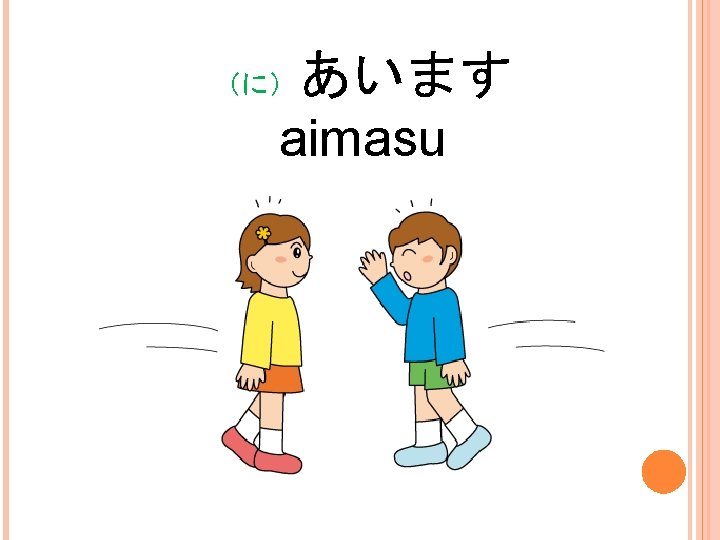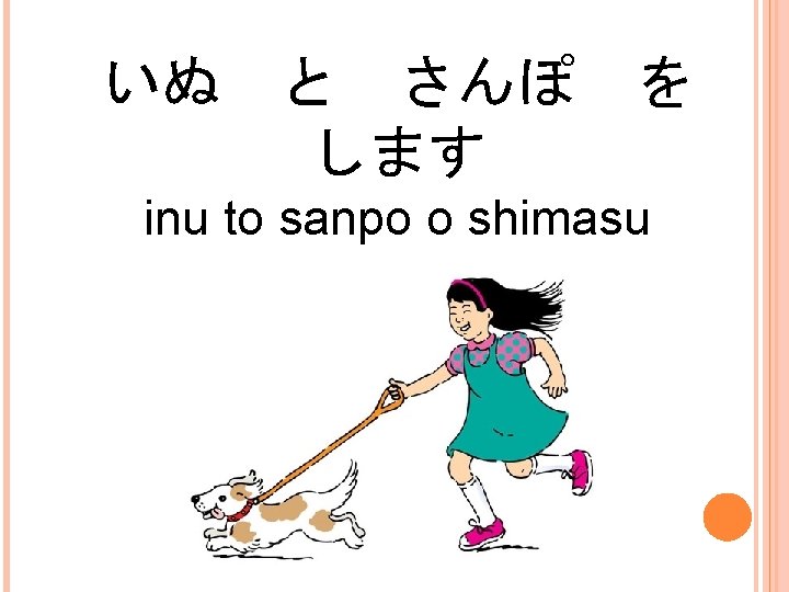 RELATIVE TIME THING を/に VERB まいあさ ジュース を のみます。 I drink juice every morning.