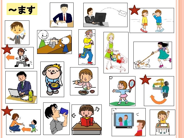 Basic Verbs tabemasu nomimasu kaimasu yomimasu kikimasu mimasu