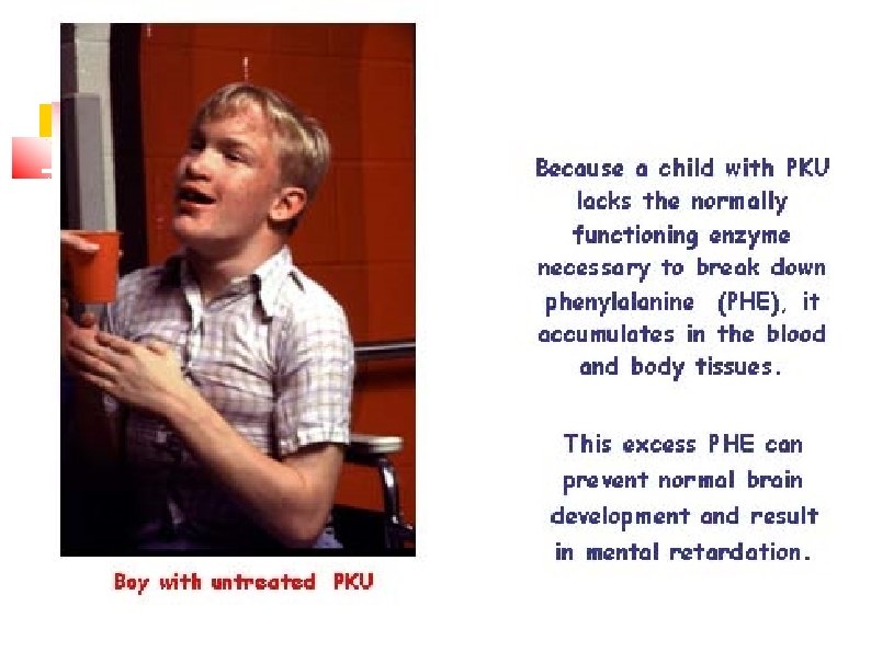 Example is phenylketonuria Thyroxine Phenylalanine Phenylpyruvic acid (excreted in urine in phenylketouria) Thyrosine Melanin pigment