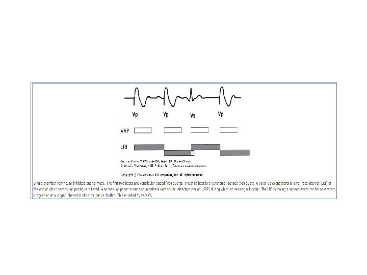 Hysteresis • Allows the rate to fall below the programmed lower rate following an intrinsic beat • lower rate limit is initiated by a paced event, while the hysteresis rate is initiated by a non-refractory sensed event. Lower Rate Interval-60 ppm VP VP Hysteresis Rate-50 ppm VS VP