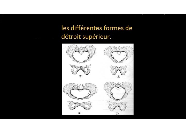 forme • L’excavation pelvienne se Développe selon un segment De tore; c’est un cylindre Courbe entre 2 orifices rétrécis Son diamètre est 12 cm; il Présente un rétrécissement à L’union des 2 tiers sup et tiers inf. passant par les épines sciatique c’est le détroit moyen de 10, 8 cm