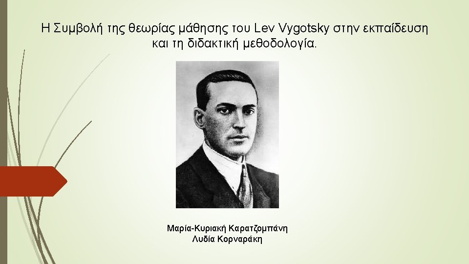 Βιβλιογραφία Bates, B. (2016). Learning Theories Simplified. . . and how to apply them to teaching. London: Sage. Cherry, K. (2016, 10 02). Lev Vygotsky Biography. Ανάκτηση από verywell: https: //www. verywell. com/lev-vygotsky-biography-2795533 Popovic, K. (2014, 09 03). Lev Vigotsky – Mozart of psychology, stepchild of adult learning. Ανάκτηση από European Infonet Adult Education: http: //www. infonetae. eu/articles-science-55/2198 -lev-vigotsky-mozart-of-psychology-stepchild-of-adultlearning Stierer, B. , & Maybin, J. (1994 ). Language, Literacy and learning in Educational Practice. The Open University. Stierer, B. , & Maybin, J. (1994). Language, Literacy, and Learning in Educational Practice: A Reader. Clevedon, Filadelfia, Adelaide: Multilingual Matters LTD - The Open University. Turner, V. D. , & Berkowitz, M. W. (2006). Scaffolding morality: Positioning a sociocultural construct. New Ideas in Psychology, 11. Verenikina, I. (2003). Understanding Scaffolding and the ZPD in Educational Research. Proceedings of the International Education Research Conference (AARE - NZARE) (σ. 9). Auckland: University of Wollongong. Μούσιου, Ό. (2010, 08 17). L. VYGOTSKY. Ανάκτηση από Όλγα Μούσιου - Μυλωνά: http: //www. olgamousiou. gr/keimena/glwssologikakeimena/57 -lvygotsky. html