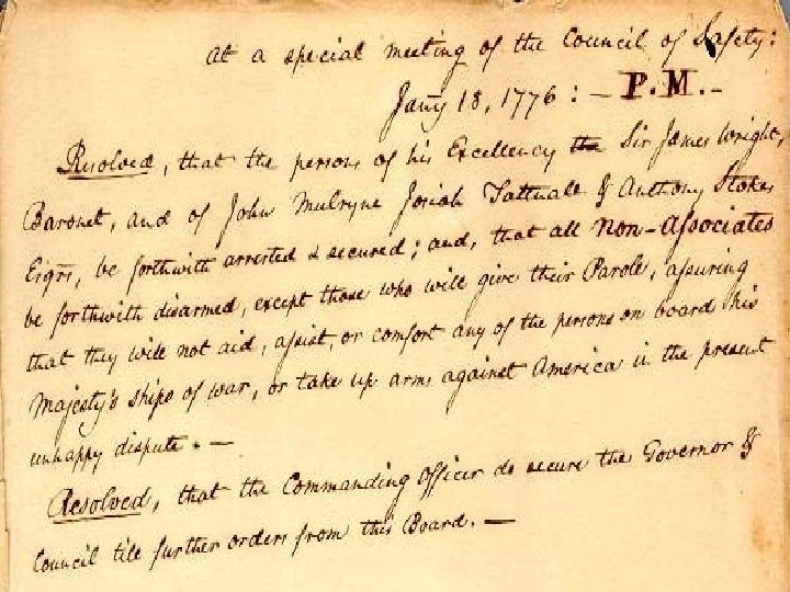 Battle of The Rice Boats • The arrival of British warships in the Savannah River in January 1776 caused the first Revolutionary crisis in Georgia. • The Council of Safety (the new governing body in GA that took over at the start of the Revolutionary War), convinced that Savannah was being taken over by British warships, placed Governor Wright under house arrest and instructed Colonel Lachlan Mc. Intosh to take charge of the defense of the city. • There followed the so-called Battle of the Rice Boats on March 2 -3, 1776, when British warships seized rice-laden merchant ships in the Savannah harbor. Their purpose was not the capture Savannah but to capture the rice for profit. • In the end, the British fleet sailed away with the rice and with the fugitive Governor Wright.
