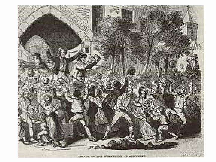 On July 14, 1789, events erupted into revolution with the storming of the Bastille. • A crowd gathered outside the prison to demand weapons they thought were stored there. • The commander fired on the crowd, killing many. The mob broke through, freeing prisoners but finding no weapons. • The fall of the Bastille challenged the existence of the ancien régime.