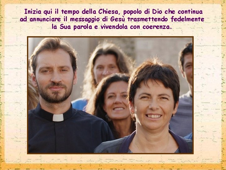 Inizia qui il tempo della Chiesa, popolo di Dio che continua ad annunciare il messaggio di Gesù trasmettendo fedelmente la Sua parola e vivendola con coerenza.