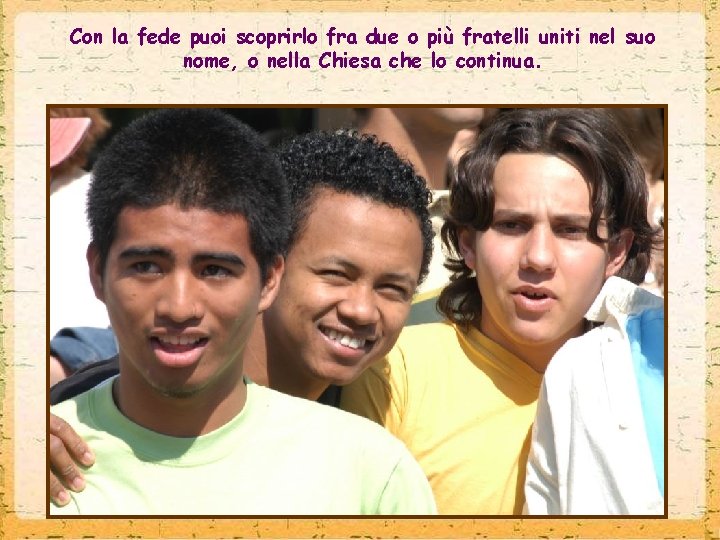 Con la fede puoi scoprirlo fra due o più fratelli uniti nel suo nome, o nella Chiesa che lo continua.
