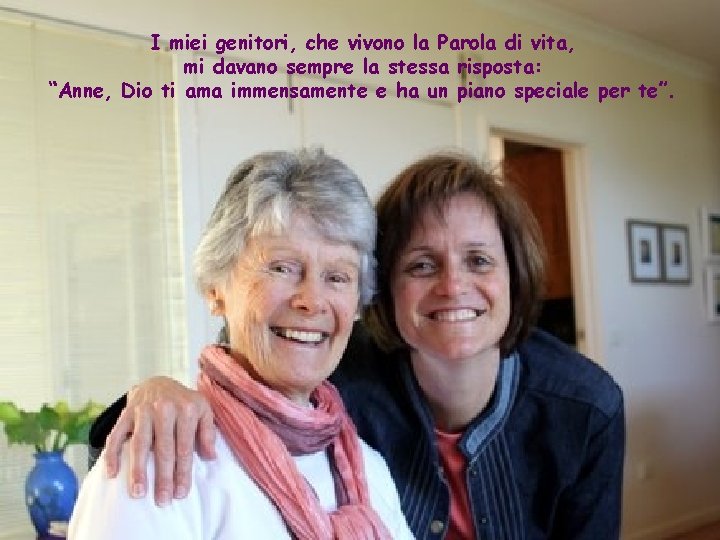 I miei genitori, che vivono la Parola di vita, mi davano sempre la stessa risposta: “Anne, Dio ti ama immensamente e ha un piano speciale per te”.