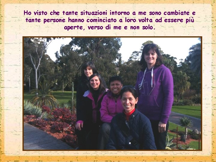 Ho visto che tante situazioni intorno a me sono cambiate e tante persone hanno cominciato a loro volta ad essere più aperte, verso di me e non solo.
