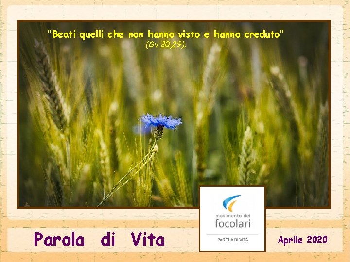 "Beati quelli che non hanno visto e hanno creduto" (Gv 20, 29). Parola di Vita Aprile 2020