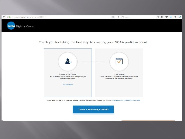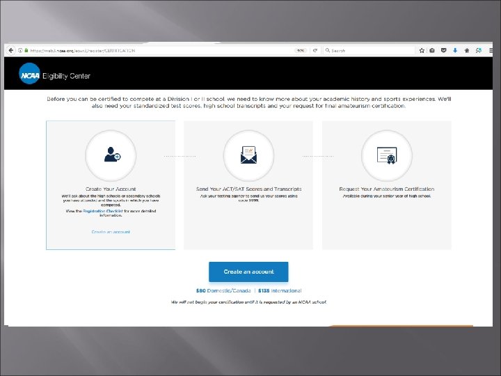 Steps to Achieving Your Eligibility Seniors Take ACT/SAT again, if necessary Check your courses Review your amateurism responses and REQUEST FINAL AMATEURISM CERTIFICATION Graduate on time (8 semesters) Ask your Guidance Counselor to send Final Transcript to the NCAA