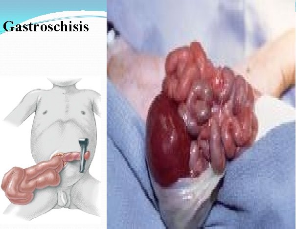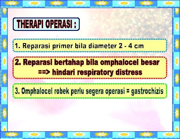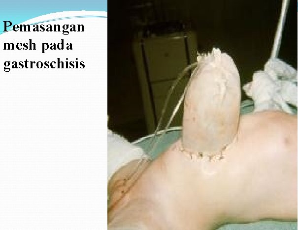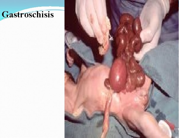 DEFEK DINDING ABDOMEN A. Jenis kelainan : 1. Omphalocele pecah 2. Gastroschisis B. Problemnya : 1. Hipotermi 2. Hipovolume 3. Infeksi 4. Gangren saluran cerna 5. Kelainan penyerta organ lain